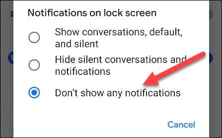 اگر میخواهید تمام نوتیفیکیشنها را مخفی کنید، گزینه Don't Show Any Notifcations را انتخاب کنید. در این بخش گزینهای برای مخفی کردن گفتگوها و نوتیفیکیشنهای بیصدا هم وجود دارد.