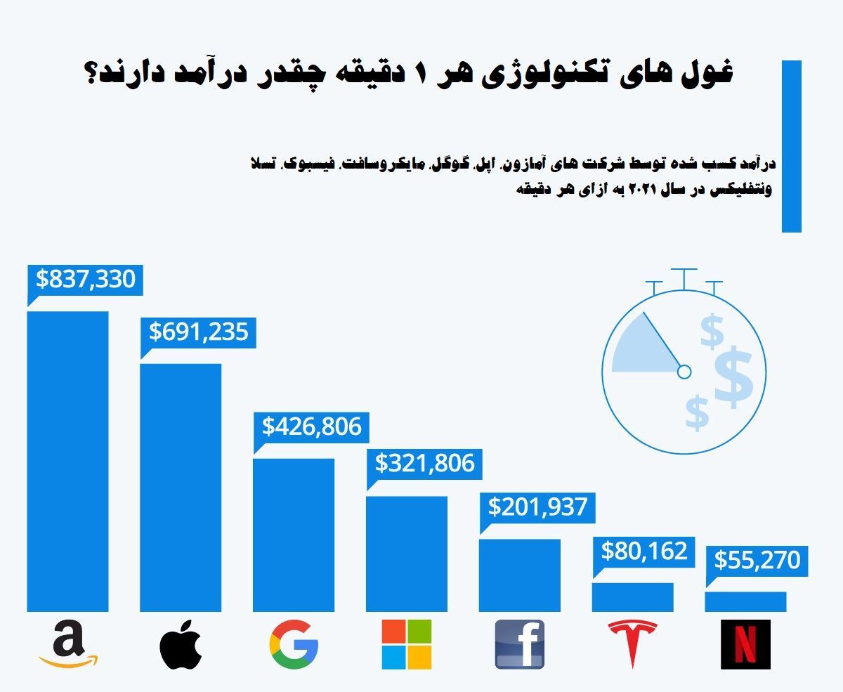 غول های تکنولوژی هر 1 دقیقه چقدر درآمد دارند؟
