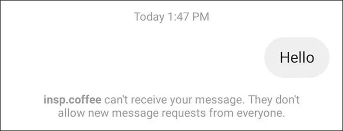 دکمه‌ی Message روی پروفایل شما قابل نمایش است اما با غیرفعال‌سازی قابلیت Message requests حتی اگر کاربری برای ارسال پیام تلاش کند، با پیام زیر روبه‌رو خواهد شد: