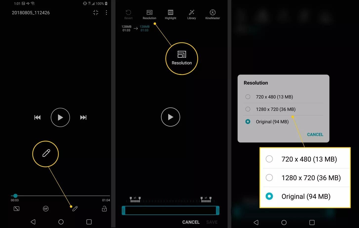 اگرچه همه برنامههای اندروید یکسان نیستند، اکثر گوشیهای مدرن اندرویدی دارای یک ابزار ویرایش فیلم ساده در برنامه گالری با برخی گزینههای فشرده سازی هستند.