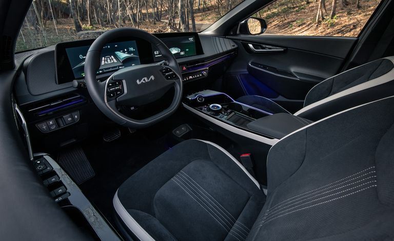 پیکربندی دو موتوره نیاز به انتخاب بسته باتری بزرگتر دارد. موتورهای برقی جلو و عقب آن در مجموع ۳۱۳ اسب بخار قدرت ارائه میدهند و کیا ادعا میکند در ۵.۱ ثانیه به سرعت 100 کیلومتر در ساعت میرسد. خودرو برتر EV۶، مدل GT است که دارای باتری ۷۷.۴ کیلووات ساعت و موتورهای برقی جلو و عقب با قدرت ۵۷۶ اسب بخار است. کیا میگوید این نمونه در کمتر از ۳.۵ ثانیه به شتاب 100 کیلومتر در ساعت میرسد.