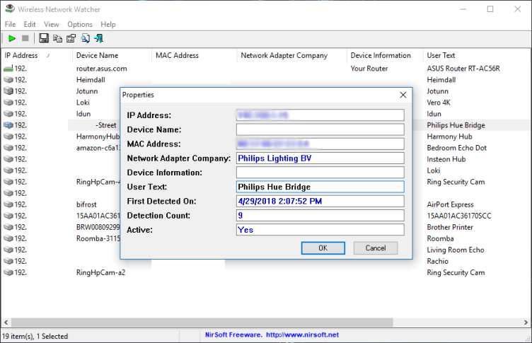 بهعنوان مثال یکی از دستگاههای نمایش داده شده در اینجا، شاید نام یکی از اعضای خانواده شما را بر روی خود داشته باشد. یا اینکه مثلا دستگاهی را مشاهده میکنید که نامی ندارد، اما در ستون Network Adapter Company مربوط به آن، عبارتی همانند “Philips Lighting BV” نوشته شده است. در چنین مواردی میتوان گفت که این دستگاه، هاب مربوط به لامپهای Philips Hue است. میتوانید بر روی دستگاه موردنظر خود دابل-کلیک کرده و سپس در قسمت “User Text”، نامی را وارد کنید تا در آینده بهتر بتوانید آن را شناسایی کنید.