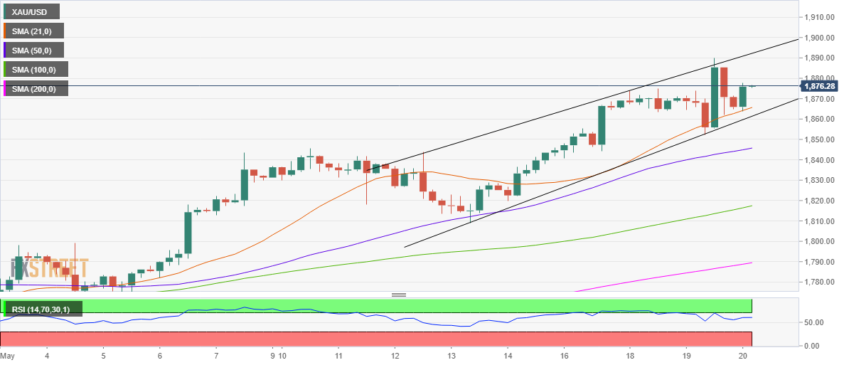 طلا برای ادامه روند صعودی خود باید سطح 1866 دلار که میانگین متحرک 21 روزه ان است را حفظ کند. در صورتی که توانایی این کار را نداشته باشد، در معرض حرکت نزولی قرار خواهد گرفت.
