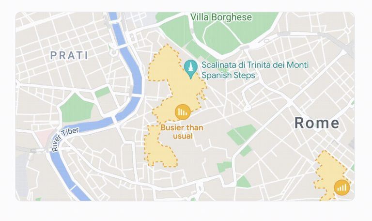 علاوه بر این گوگل از ویژگی جدید «شلوغی منطقه» (Area Busyness) هم رونمایی کرده است که دادههای آن از سرجمع کردن اطلاعات ناشناس کاربران بهدست میآید. ویژگی میزان شلوغی، پیش از این برای مکانها دردسترس بود و بهویژه در هنگام همهگیری کرونا، این ویژگی راهی مناسب برای جلوگیری از ازدحام در فروشگاهها، محلهها و محدودههای گوناگون بهشمار میرود.