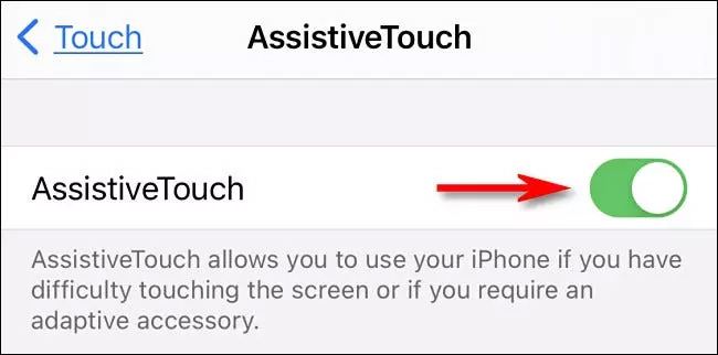 مطابق با تصویر عمل کرده و کلید موجود در کنار گزینه AssistiveTouch را روشن کنید.