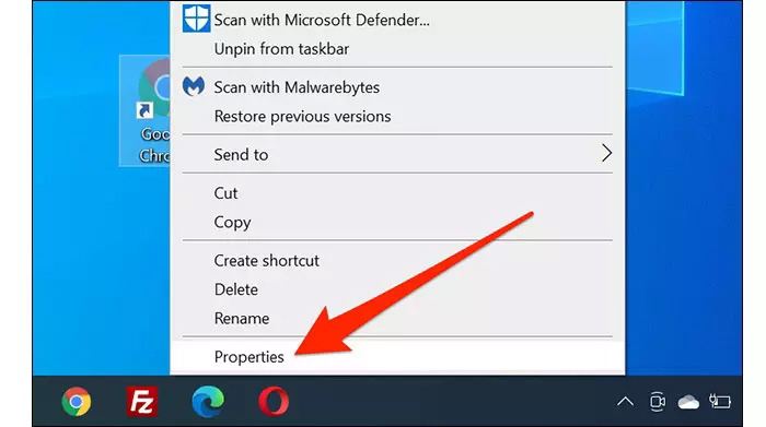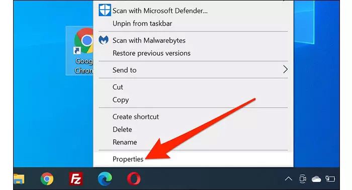 در ادامه کار باید روی گزینه تأیید (Ok) کلیک کنید و پنجره تنظیمات را ببندید. وارد صفحه دسکتاپ شوید تا بتوانید آیکونهای پنهان خود را مشاهده کنید. سپس روی یک آیکون مخفیشده، راست کلیک و گزینه Properties را انتخاب کنید.