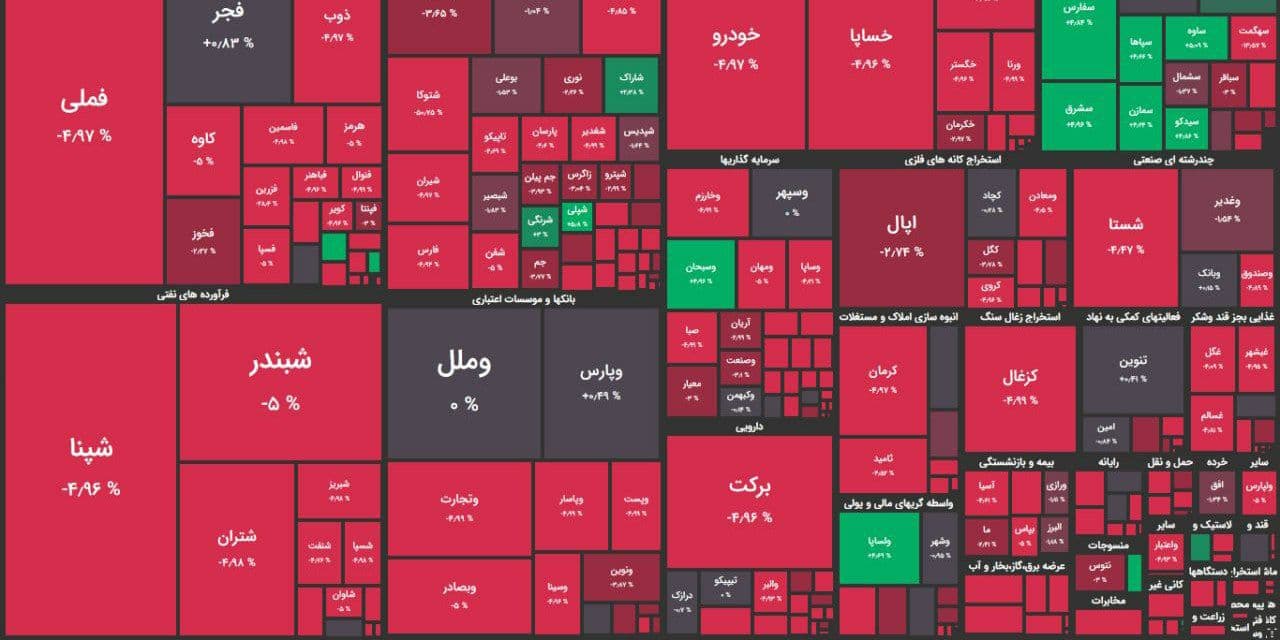 شاخص کل بورس تهران در پایان معاملات امروز یکشنبه دوم خردادماه ۱۴۰۰ با ریزش ۲۰ هزار و ۴۲۱ واحدی به رقم یک میلیون و ۱۰۷ هزار و ۷۹۶ واحد رسید. در این روز شاخص کل ۱.۸۱ درصد و شاخص هم‌وزن ۱.۰۱ درصد ریزش داشتند که نشان می‌دهد شرکت‌های کوچک از ریزش بازار در امان نبودند، اما وضعیت برای شرکت‌های بزرگ به مراتب سخت‌تر بود