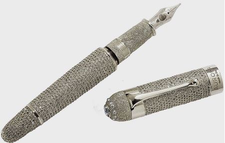 استفاده از الماس و یاقوت کبود در طراحی این قلم باعث شده تا یک قلم چشم نواز و جذاب را با قیمت بیش از ۱۶۹ هزار یورو پشت شیشه مغازه شاهد باشیم.