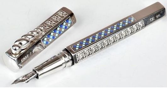 قلم ۶ گوش که تمام گوشههای آن از نقره استرلینگ جامد ساخته شده و در طراحی آن، سنگهای گرانبها از جمله یاقوت، الماس و زمرد بکار رفته است.