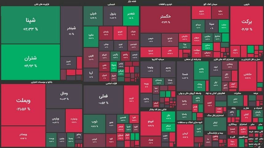 بانک ملت، بانک تجارت، گسترس نفت و گاز پارسیان، بانک صادرات ایران و گروه مپنا نسبت به سایر نمادها بیشترین تاثیر منفی و در مقابل پالایش نفت تهران نسبت به سایر نمادها بیشترین تاثیر مثبت را روی بورس گذاشتند.