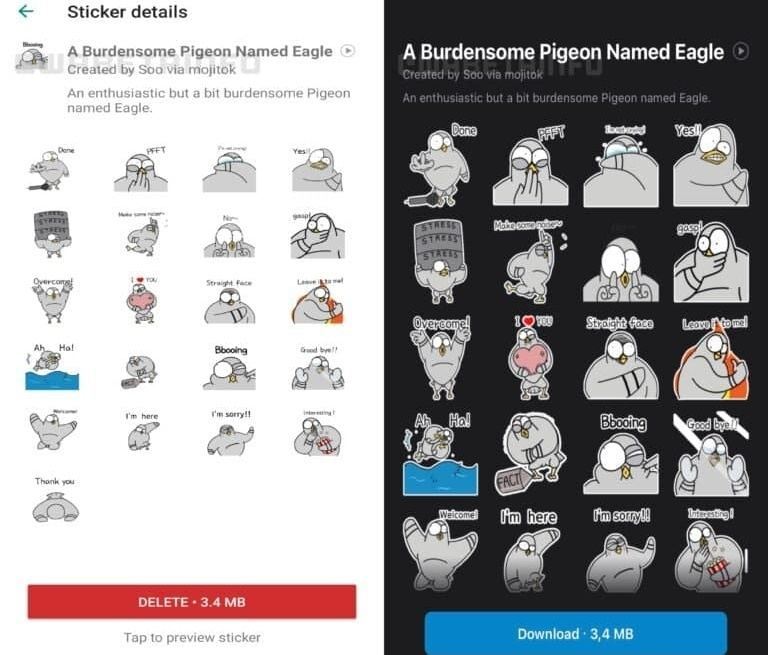 در اوایل ماه جاری، واتساپ شش بسته استیکر جدید برای استفاده کاربران در این برنامه را معرفی کرد. بسته اول A Burdensome Pigeon به نام Eagle، بسته دوم، Dashing Beer است که Betakkuma 2 نامیده می‌شود، سومین بسته Egg و Chup هستند، بسته چهارم realists-are rabbits نام دارد، بسته پنجم Square Cheese’s Daily Life است و در آخر بسته ششم Frankly Weird نامگذاری شده است.
