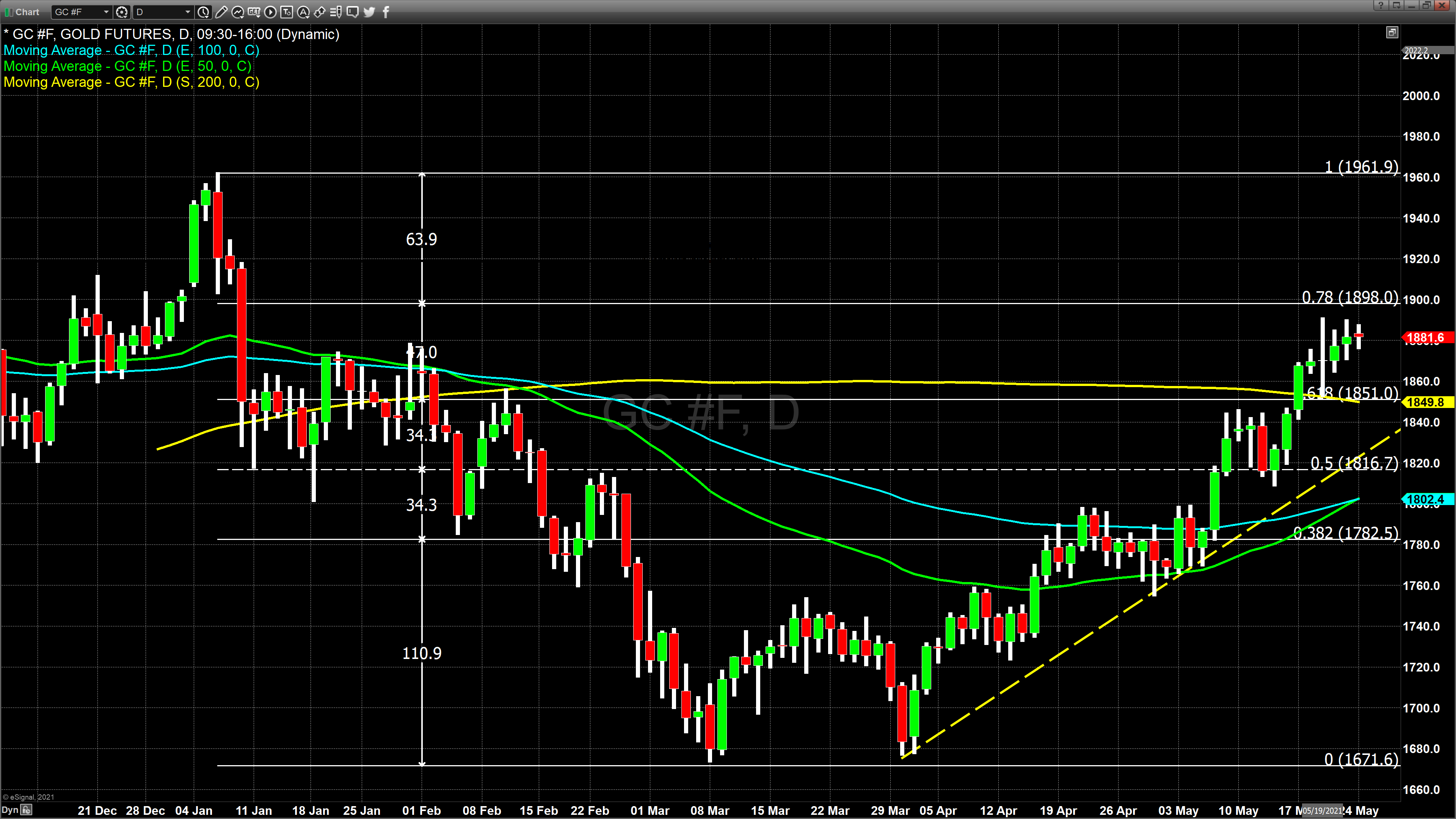 مهم ترین سطح پشتیبانی قیمت طلا 1849 و 1851 دلار می باشد که میانگین تحرک 200 روزه و همچنین حمایت فیبوناچی را نشان می دهد. در صورت یک حرکت اصلاحی طلا می تواند در محدوده 1852 تا 1871 دلار قرار بگیرد.