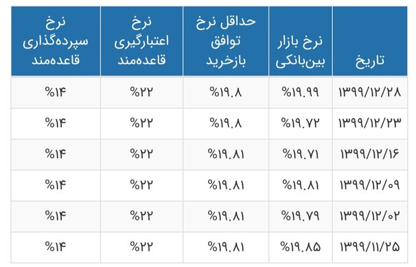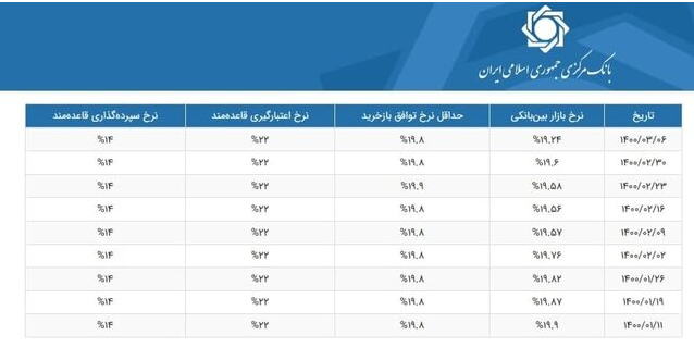 اکنون، اعلام بانک مرکزی از عملکرد بازار بین بانکی حاکی از آن است که نرخ سود در این بازار بعد از شهریور سال گذشته که نرخهایی نزدیک و بالای بیست درصد را ثبت کرده بود، حالا در اولین گزارش خردادماه ۱۴۰۰، بعد از گذشت هشت ماه به سطح ۱۹ درصدی نزدیک شده است.