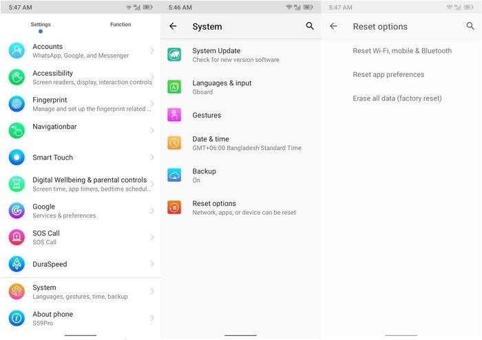 سرانجام، برای تأیید بازنشانی عمده روی بازنشانی تنظیمات (Reset settings) ضربه بزنید.