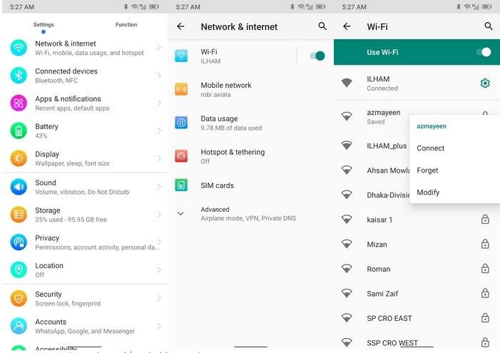 برای حذف شبکه Wi-Fi از لیست خود، روی forget ضربه بزنید. تلفن Android شما تمام دادههای مربوط به شبکه را حذف میکند.