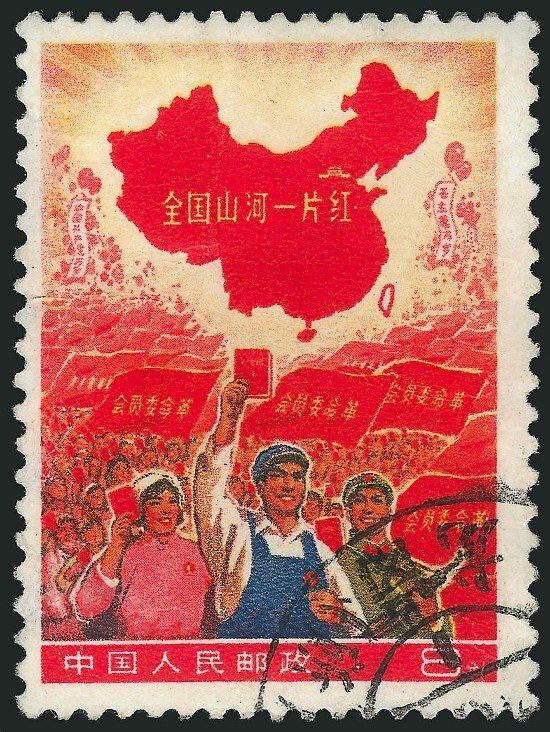 قیمت این تمبر پنجاه هزار دلار آمریکا است و در سال ۱۹۶۸، در جریان انقلاب فرهنگی چین صادر شده و نقشه چین را با رنگ قرمز نشان می‌دهد. این تمبر حاوی تصویری از کشاورزان، کارگران و سربازان است که یک کتاب قرمز حمل می‌کنند. اولین بار که این تمبر چاپ شد نقشه تایوان در تصویر سفید رنگ بود نه قرمز، پس از کمی دقت طراحان این اشتباه را کشف کردند و تمبر‌ها به سرعت از بازار جمع شدند و این تنها نمونه از این تمبر است.