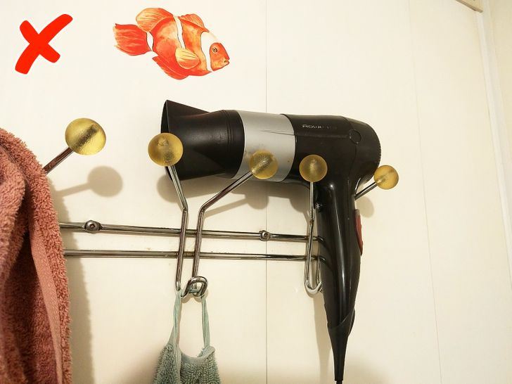 6. لوازم برقی: برخی از وسایل برقی مانند سشوار در حمام نگهداری می شوند اما این اصلا ایده خوبی نیست. علاوه بر افزایش خطر برق گرفتگی به دلیل وجود رطوبت، عمر وسایل برقی شما نیز کاهش پیدا می کند.