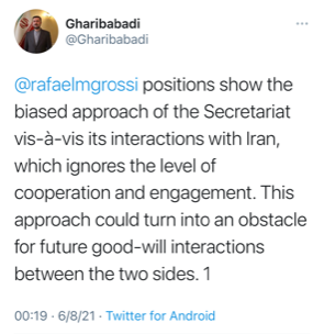 واکنش غریب آبادی به اظهارات و گزارش مدیرکل آژانس