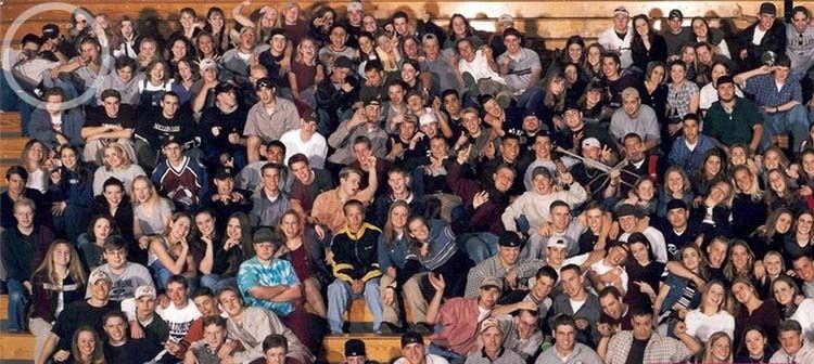 اما چند هفته پس از گرفتن این عکس، اریک هریس و دیلن کلبولد (در گوشه سمت چپ با نشان دادن تفنگ‌های خیالی به سمت دوربین) در یک تیراندازی دقیق مدرسه‌ای در کلمباین، دوازده دانش آموز و معلم را به ضرب گلوله کشتند.