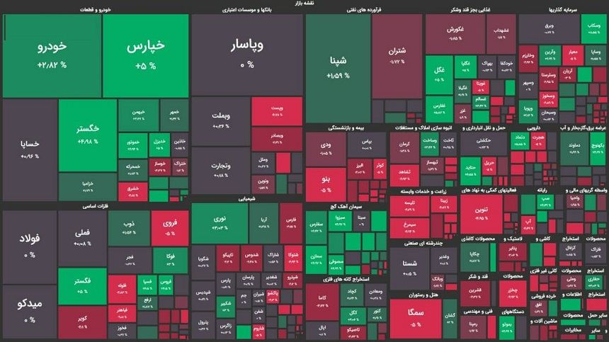 امروز نماد پلیمر آریا ساسول (آریا)، صنعتی مینو (غصینو)، تولید نیروی برق دماوند (دماوند)،‌ پتروشیمی زاگرس (زاگرس)، صنایع ماشین های اداری ایران (مادیرا)، بهمن دیزل (خدیزل)، سهامی ذوب آهن اصفهان (ذوب)، شیر پاستوریزه پگاه فارس (غفارس)، شرکت آهن و فولاد ارفع (ارفع)، سیمان ساوه (ساوه) و تولید برق ماهتاب کهنوج (بکهنوج) تاثیر مثبت بر شاخص این بازار داشتند.