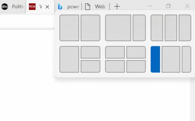 یکی از بهترین قابلیتهای ویندوز ۱۰ ویژگی Snap Assist برای تقسیم و مدیریت پنجرهها است که با تقسیم صفحهنمایش به دو نیمه یا چهار بخش کمک میکند کاربر بتواند در یک لحظه، با چندین اپلیکیشن به صورت همزمان کار کند. حالا در ویندوز ۱۱ مایکروسافت امکانات مربوط به این مشخصه را افزایش داده است. در ویندوز ۱۱ با قرار دادن ماوس بر آیکون مربوط به بزرگ کردن پنجره، چندین گزینهی مختلف را برای چینش پنجرهها مشاهده میکنید.
