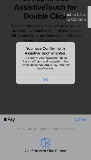 تایید با AssistiveTouch: با فعال کردن این گزینه میتوانید بدون نیاز به دوبار ضربهزدن روی کلید کناری، فرایند پرداخت را تایید کنید. البته باید این قابلیت را قبل از استفاده، راهاندازی کنید. (خیلی در کشور ما کاربردی نیست).