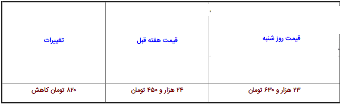 | قیمت روز شنبه | قیمت هفته قبل | تغییرات |