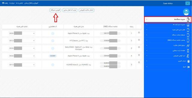 پس از وارد کردن شماره سیمکارت، رمز عبور موقت برای آن شماره ارسال میشود. با استفاده از رمز عبور ارسالشده و وارد کردن کد امنیتی، وارد سامانه شوید. در ادامه در صفحه اصلی «مدیریت دستگاهها» روی گزینه «افزودن دستگاه» کلیک کنید.