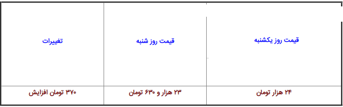 | قیمت روز یکشنبه | قیمت روز شنبه | تغییرات |