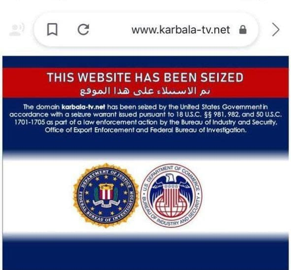وزارت دادگستری آمریکا شامگاه سه شنبه در ادامه اقدام خود در مسدود کردن رسانههای محور مقاومت اقدام به مسدود کردن سایت شبکه کربلاء وابسته به حرم امام حسین علیه السلام کرد.