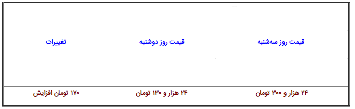 | قیمت روز سهشنبه | قیمت روز دوشنبه | تغییرات |