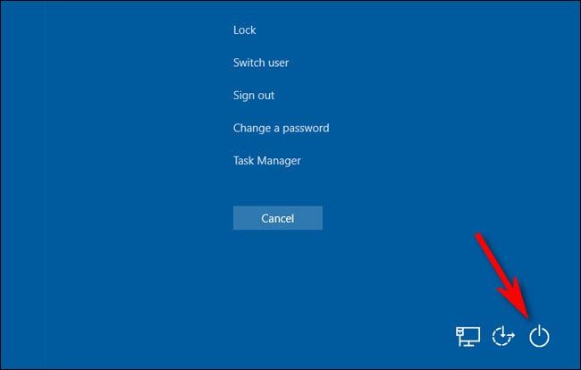 اگر Ctrl + Alt + Delete را روی صفحه کلید خود فشار دهید، صفحه خاصی ظاهر می شود که به شما امکان می دهد Task Manager را راه اندازی کنید و موارد دیگر. همچنین می توانید از اینجا رایانه شخصی خود را خاموش کنید. در گوشه پایین سمت راست صفحه، روی نماد پاور (دایره ای که یک خط در آن دارد) کلیک کنید و Shut Down را از فهرست انتخاب کنید.
