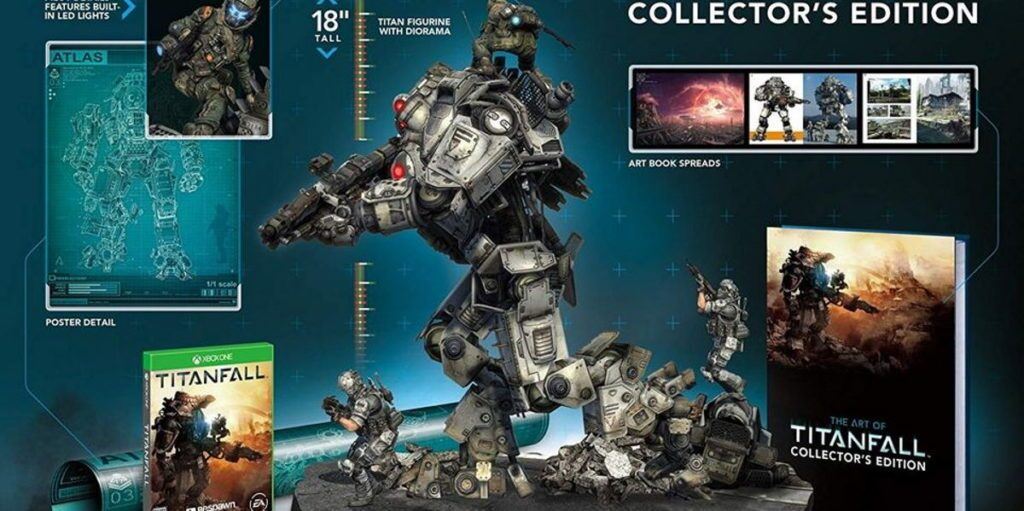 نسخه ابتدایی تایتانفال یک اثر انقلابی در بین شوترهای آنلاین نظامی به حساب میآمد و گیمپلی عجیبی را در جریان رقابتهای آن شاهد بودیم که نمونهاش را در هیچ بازی دیگری پیدا نمیشد. بخش عمدهای از اعجاز تایتالفال اما مربوط به همان رباتهای بزرگی میشد که در جریان رقابتها میتوانستیم سوارشان شویم و به دل دشمنان بزنیم. این رباتهای غولپیکر، تایتان نام داشتند و تیم سازنده هم که متوجه جذابیت آنها برای طرفداران بازی شده بود، یک مجسمه ۱۸ اینچی از آنها را به همراه کتابی ۱۹۰ صفحهای از کانسپت آرتهای بازی، در پکیج نسخه کلکسیونی تایتانفال قرار داد تا گیمرها حتی برای خرید این نسخه هم بیشتر هایپ شوند. در آن زمان این پکیج جذاب ۲۵۰ دلار قیمت داشت اما اگر الان بخواهید دنبالش بروید، باید چیزی در حدود ۴۰۰ دلار برایش هزینه کنید.