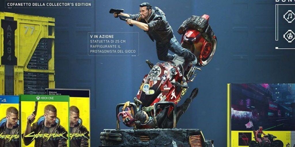 شاید سایبرپانک ۲۰۷۷ آن بازیای نشد که انتظار داشتیم اما از حق نگذریم نمیشود چشم از نسخه کلکسیونی جذابش برداشت. در بستهبندی نسخه کلکسیونی بازی یک مجسمه از ورژن مذکر وی قرار داشت که در حال له کردن یک مرد با موتور سیکلت بود. کیفیت ساخت و طراحی جزئیات این مجسمه در یک کلام بینظیر بود و محال است آن را ببینید و برای پرداخت هزینه ۲۵۰ دلاریش وسوسه نشوید. جالب اینکه پکیچ نسخه کلکسیونی سایبرپانک ۲۰۷۷ فقط به همین مجسمه زیبا ختم نمیشد. بلکه شما با خرید این نسخه میتوانستید یک آرت بوک فوقالعاده، استیل بوکی زیبا، جاسوییچی با طرح سایبرپانک، یک کارت پستال، نقشه نایت سیتی، چند استیکر، کتاب راهنمای گردشگری نایت سیتی و دفترچهای که حاوی خلاصه داستانهای پیش زمینه بازی میشد را نیز به دست آورید.