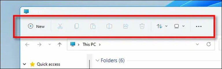 در مقایسه با ویندوز ۱۰، فایل اکسپلورر ویندوز ۱۱ از نوار ابزار بسیار ساده‌تری بهره می‌برد. در این محیط جدید دیگر شاهد تب‌هایی مانند File، Edit و View نیستیم و در عوض آیکون‌های ساده‌ای را می‌توانید ببینید که کارهایی مانند ایجاد پوشه‌های جدید، کپی، پیست، تغییر نام و حذف کردن را انجام می‌دهند.