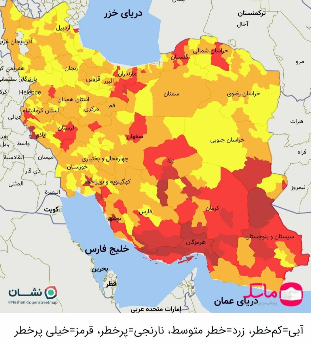 رنگ بندی شهرها ۱۱ تیر ۱۴۰۰/ تهران و ۹۱ شهرستان دیگر در وضعیت قرمز کرونا