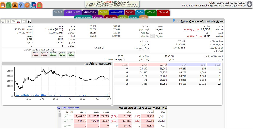 شاخص کل بورس تهران در پایان معاملات امروز یکشنبه ۱۳ تیرماه ۱۴۰۰ با کاهش دو هزار و ۳۱۹ واحدی به رقم یک میلیون و ۲۴۳ هزار و ۷۹۲ واحد رسید.