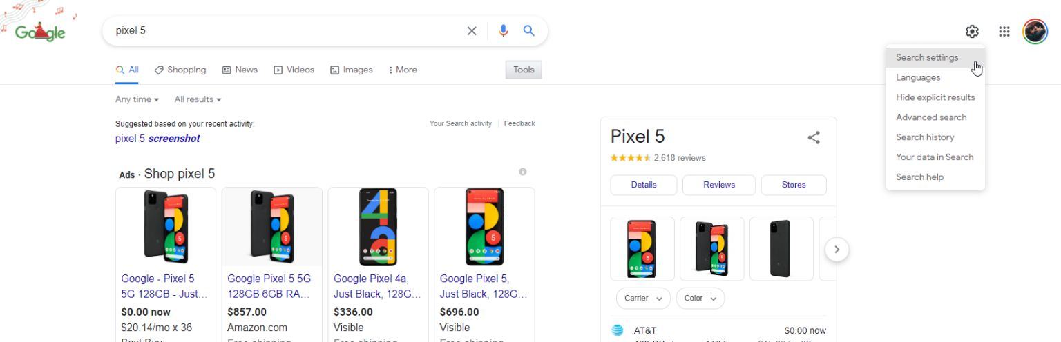 گوگل به تازگی شروع به انتشار این دکمه تنظیمات جدید کرده که در صفحه وب، در سمت راست بالای نمایشگر در کنار آیکون پروفایل کاربر به چشم میخورد. زمانی که روی این دکمه کلیک کنید، منویی با چندین گزینه پیش روی شما قرار میگیرد.