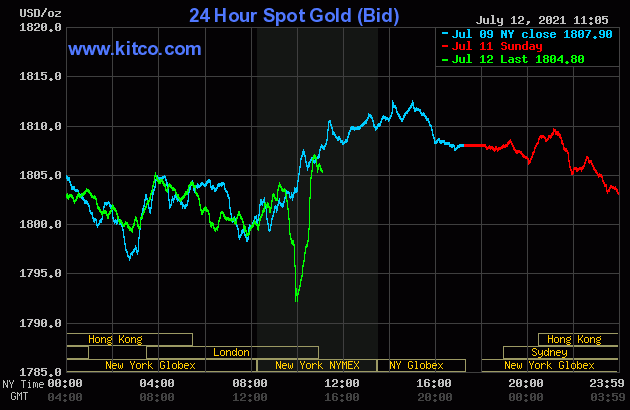 هم اکنون هر اونس طلای جهانی با نزدیک به 3 دلار کاهش 1804 دلار در حال معامله است و هر اونس نقره نیز با 0.14 دلار افزایش در عدد 26.21 دلار قرار دارد.