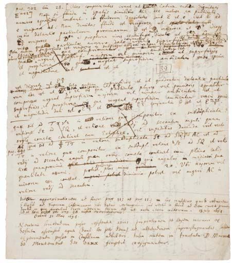 یک دست نوشته از "آیزاک نیوتن" که نسخه بازنگری و اصلاح شده از سه بخش از نسخه اول کتاب مشهور وی به نام "اصول ریاضی فلسفه طبیعی"(Philosophiae Naturalis Principia Mathematica) است و یکی از با ارزشترین اسناد تاریخ علم محسوب میشود، با قیمت دو میلیون و ۳۵۰ هزار دلار در حراج کریستی لندن چوب حراج خورد.