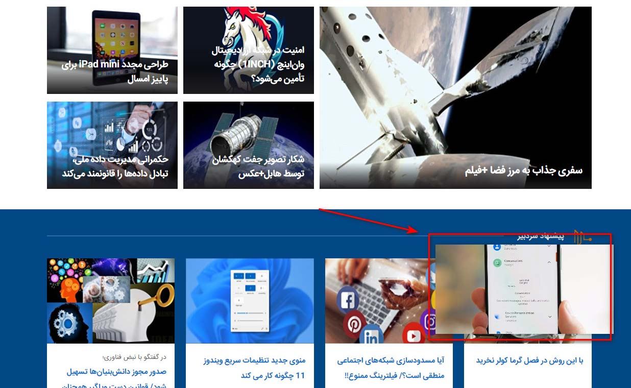 6-روی یک تب دیگر کلیک کنید. خواهید دید که هر جای رایانه که بروید نسخه کوچکتر پخش کننده یوتیوب روی صفحه باقی می ماند و ویدیوی شما را پخش می کند. حتی اگر برنامه دیگری را باز کنید یا مرورگر وب خود را مینیمایز کنید پخش ویدیو ادامه خواهد داشت. در تصویر زیر می بینید که ما در صفحه اصلی نبض فناوری هستیم اما ویدئوی یوتیوب هم در حال پخش شدن است.
