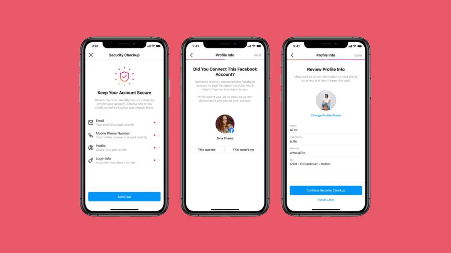 اینستاگرام با انتشار یک پست در وبلاگ فیسبوک توضیح داد که کاربران با Security Checkup میتوانند صحت ایمیل، شماره تلفن و اطلاعات پروفایل خود را بررسی و هر کدام از آنها را ویرایش کنند. تنها قابلیتی که در این ابزار دیده نمیشود احراز هویت دومرحلهای یا ۲FA است. با این حال، گفته شده که ظرف چند هفته آینده امکان احراز هویت با حساب واتساپ در دسترس کاربران اینستاگرام قرار میگیرد.