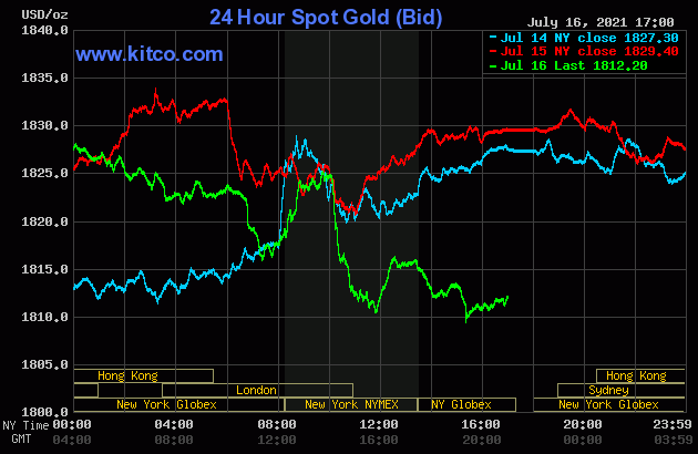 هم اکنون هر اونس طلای جهانی 1812 دلار قیمت دارد که نسبت به روز پنجشنبه 17 دلار کاهش را تجربه کرده است. قیمت نقره نیز به ازای هر اونس 25.64 دلار است که 0.69 دلار کاهش داشته است.