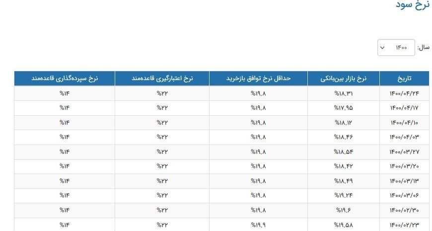 جدول تغییرات نرخ سود بین‌بانکی نشان می‌دهد که نرخ سود در این بازار که در هفته های قبل روند نزولی را طی می کرد در هفته منتهی 24 تیرماه با افزایش همراه شده است.