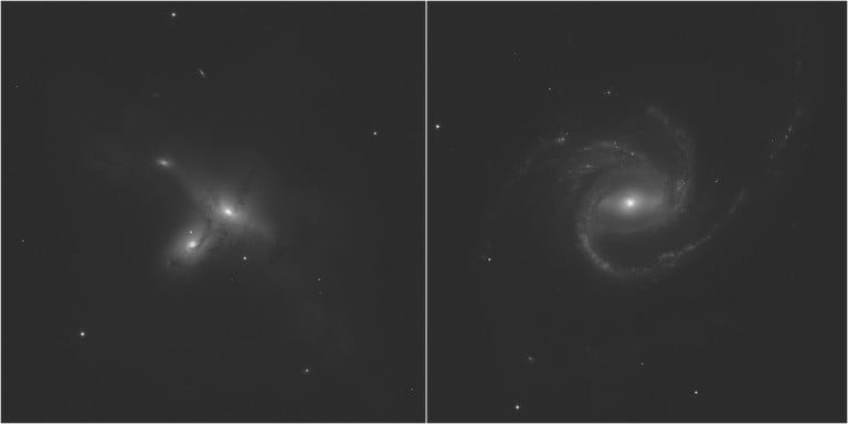 تصویر سمت چپ در واقع دو کهکشان را نشان می دهد که در مجموع با نام ARP-MADORE2115-273 شناخته می شوند و توسط ناسا به عنوان نمونه نادری از یک جفت کهکشان در تعامل در نیمکره جنوبی توصیف شده است.