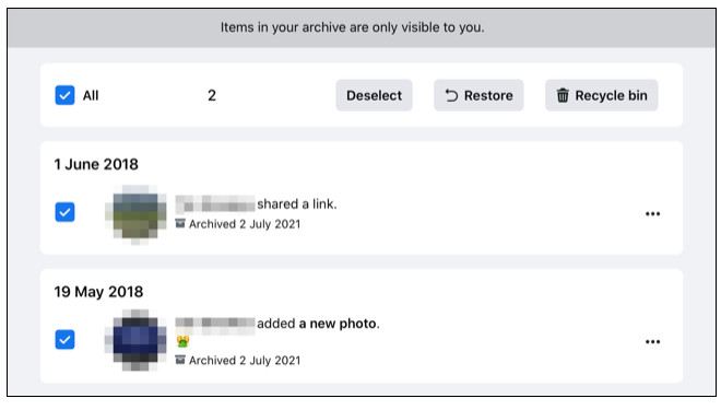 در حالی که پست ها بایگانی می شوند؛ اما فقط برای شما قابل مشاهده هستند. شما می توانید با مراجعه به بایگانی خود ، از طریق Activity Log در دسترس باشید ، هر یک از این پست ها را دوباره قابل مشاهده کنید.