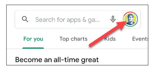 بعد ، روی نماد نمایه خود در سمت راست نوار جستجو ضربه بزنید.