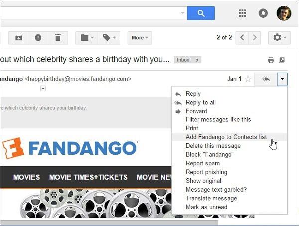 روش دیگر این است که آدرس ایمیل را به لیست Contact اضافه کنید.