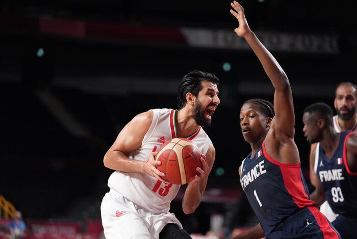 تیم ملی بسکتبال ایران با ترکیب محمد جمشیدی، صمد نیکخواه بهرامی، حامد حدادی، ارسلان کاظمی و بهنام یخچالی رقابت امروز برابر فرانسه را آغاز کرد.