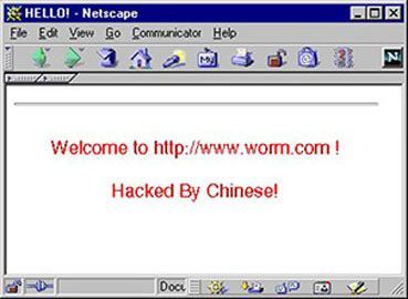 Code Red در مجموع توانست بیش از 1 میلیون سرور را آلوده کند و در صفحه های ویروسی عبارت Hacked By Chinese را مانند تصویر زیر به نمایش بگذارد.